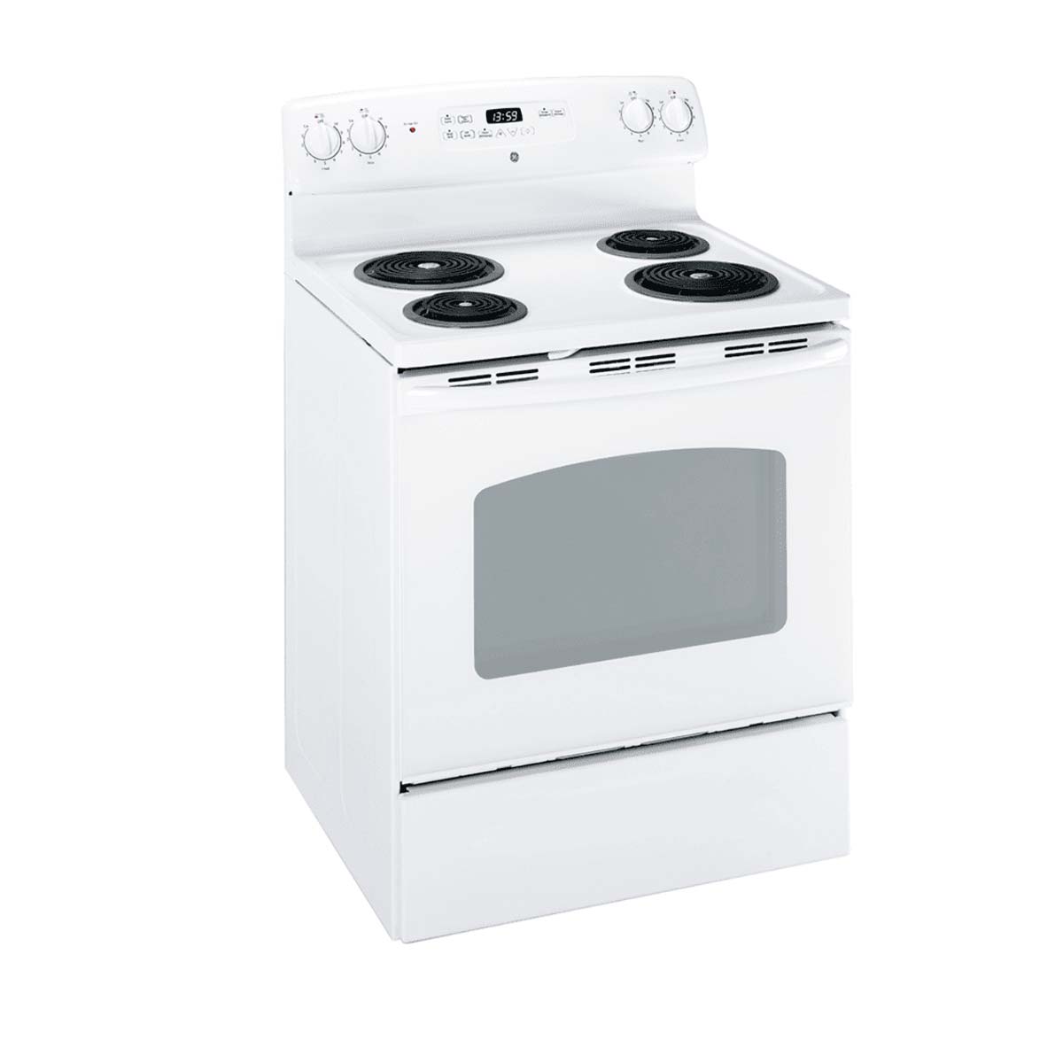 The GE 30-Inch Freestanding Electric Range (Model JCBP240DMWW) combines practicality and functionality with a sleek white design. With a large oven capacity, four coil burners, and a convenient storage drawer, this range is perfect for home cooks seeking dependable performance.