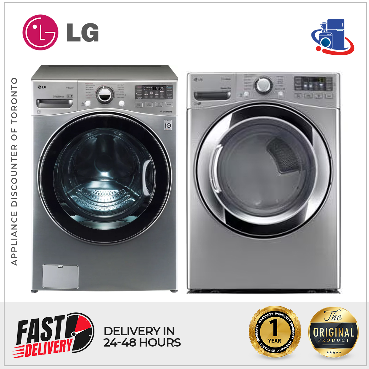 The LG Washer and Dryer Set (WM3470HVA & DLEX3370V) offers premium performance with TurboWash™, Steam Technology, and Sensor Dry. Perfect for efficient and fabric-friendly laundry care.