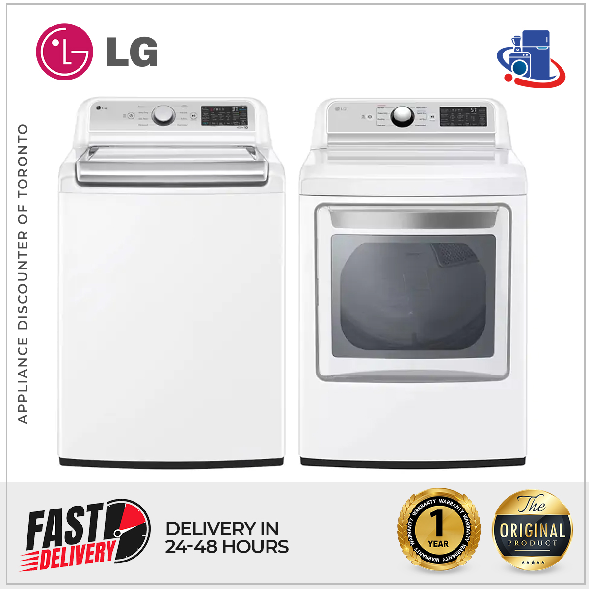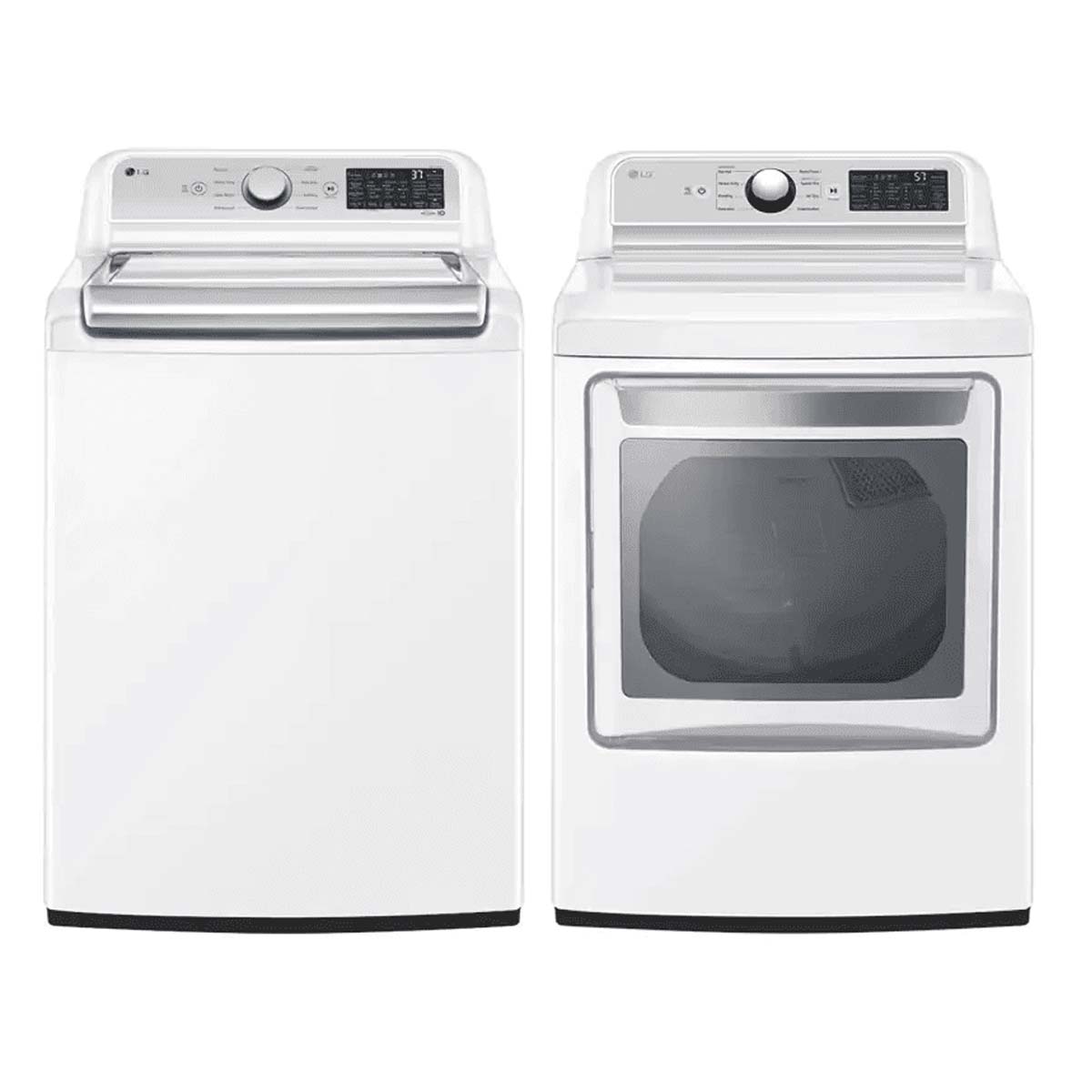LG 5.3 cu. ft. Smart Top Load Washer & 7.3 cu. ft. Smart Electric Dryer Set (Models WT7405CW & DLE7400WE)