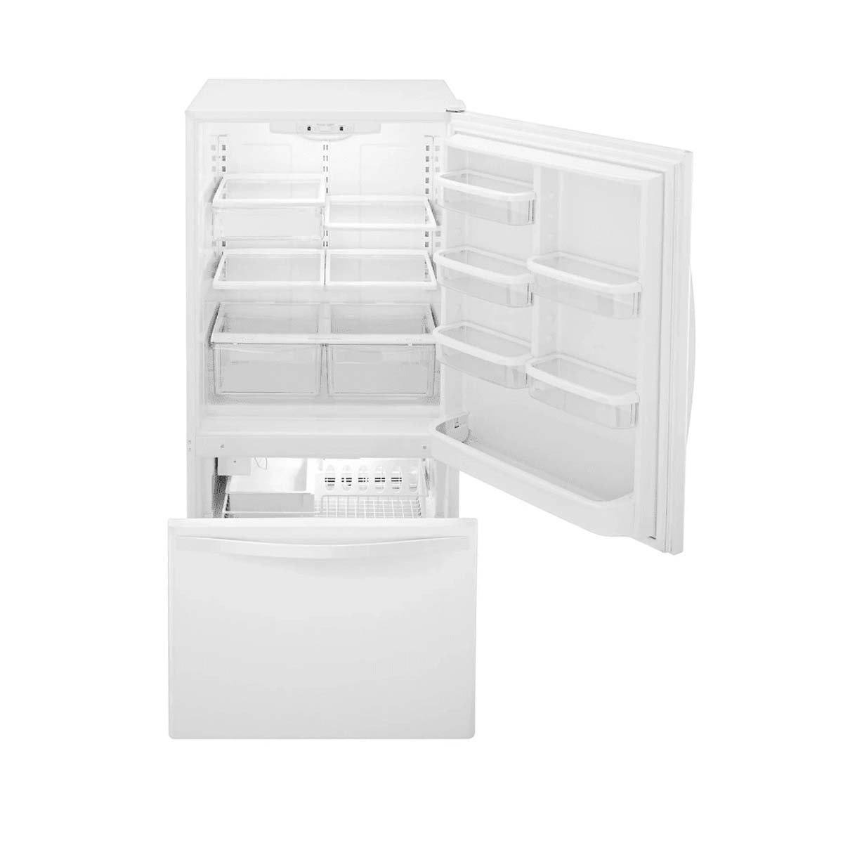 The Whirlpool 19 cu. ft. Bottom Freezer Refrigerator (WRB329DFBW) combines a spacious interior, practical bottom freezer design, and energy-efficient performance. Its modern white finish adds style and functionality to any kitchen.