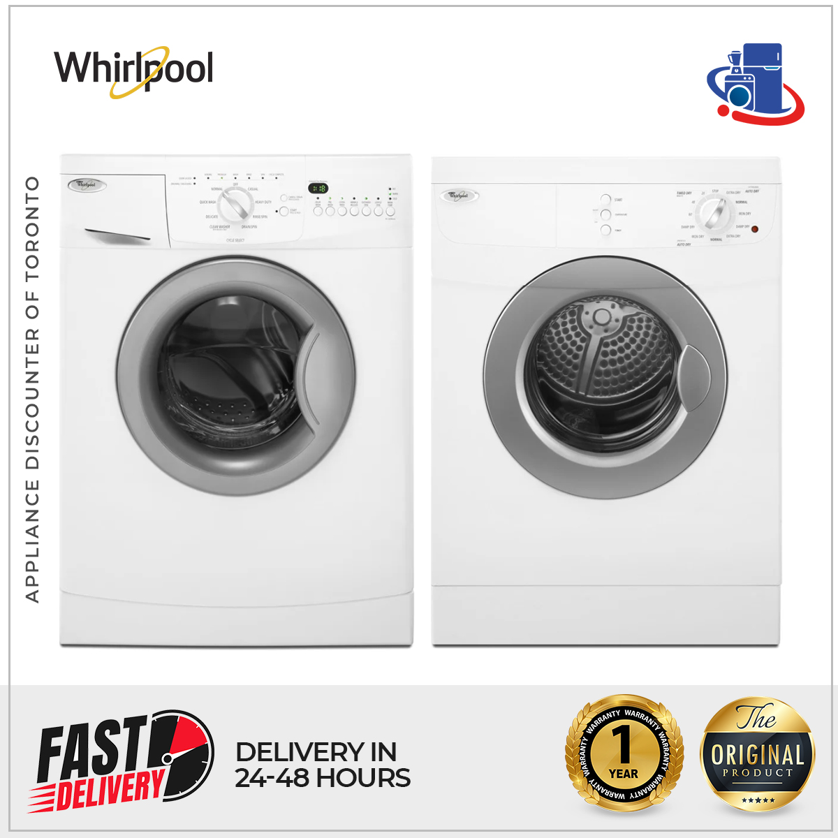 The Whirlpool Compact Washer and Dryer Set (WFC7500VW & WED7500VW) is designed for small spaces, offering powerful cleaning and drying performance with space-saving features. Perfect for apartments, condos, or laundry closets.
