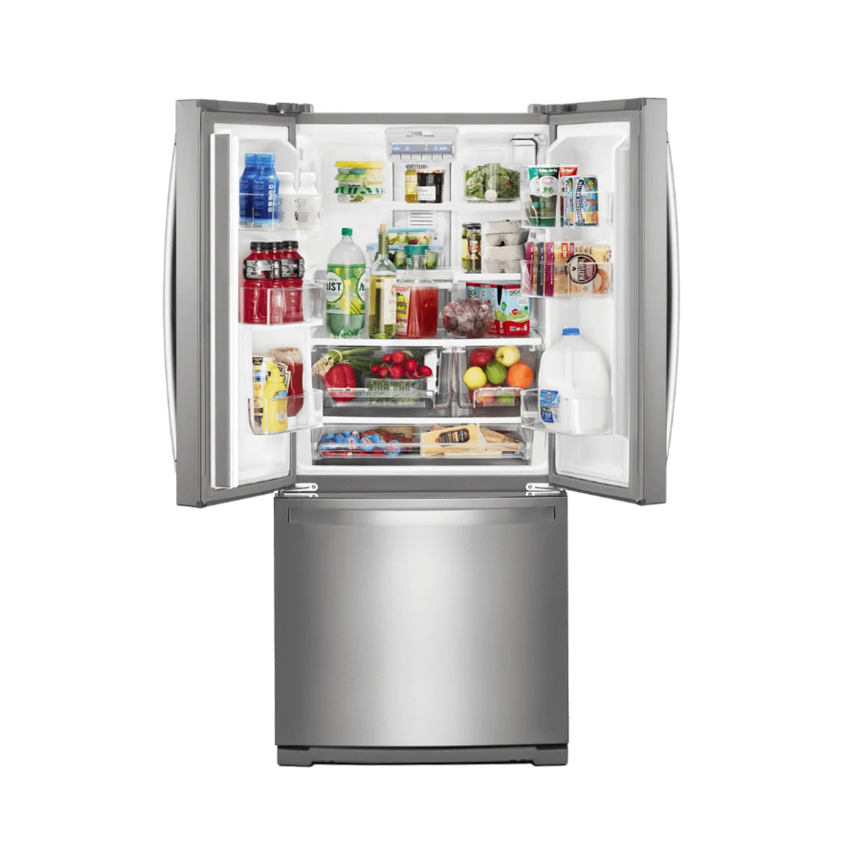 The Whirlpool 20 cu. ft. French Door Refrigerator (Model WRF560SMHZ) combines style and practicality, offering flexible storage options and advanced cooling performance in a compact footprint. Perfect for smaller kitchens, this refrigerator provides the functionality of a full-sized unit while saving space.