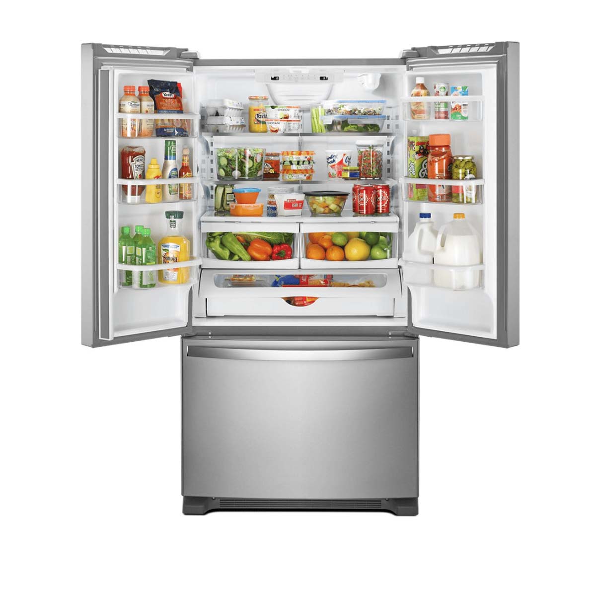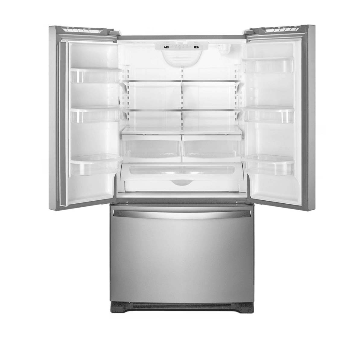 The Whirlpool 22 cu. ft. French Door Refrigerator (WRFF5333PZ) combines sleek design, flexible storage options, and advanced cooling technologies. Its compact 33-inch width and fingerprint-resistant stainless steel finish make it a stylish and functional choice for smaller kitchens.